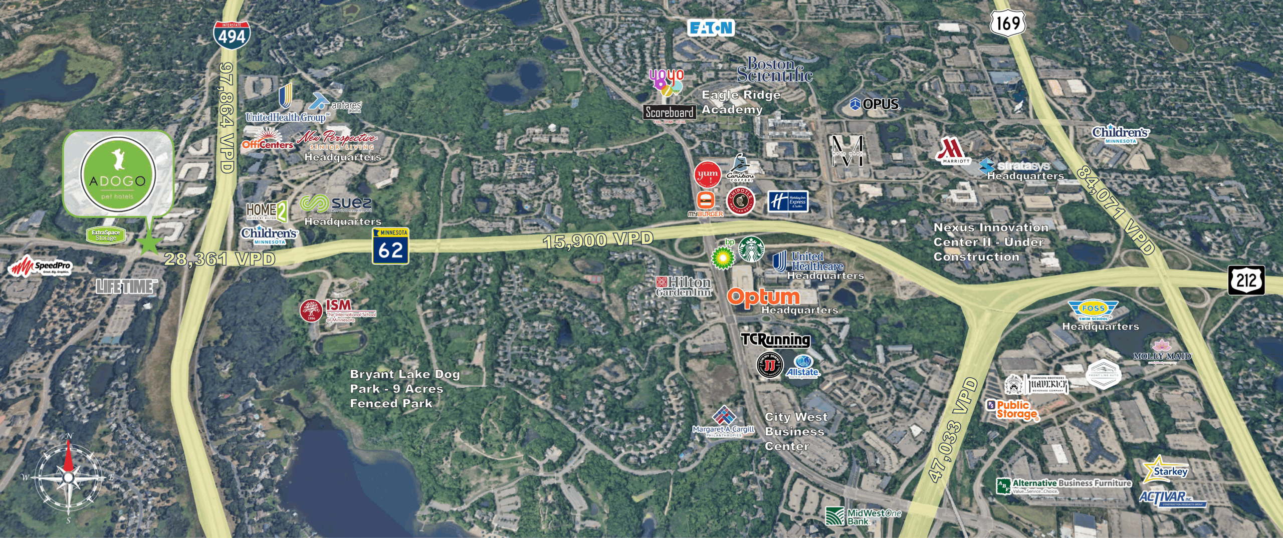 • Nearby tenants include United Healthcare, Optum, Carlson Companies, Michael Foods, Children’s ENT, Lifetime Fitness, and more.